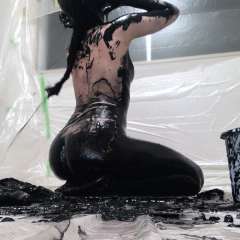 JustJade rolled around with JBLovesmud on a tarp covered with oil